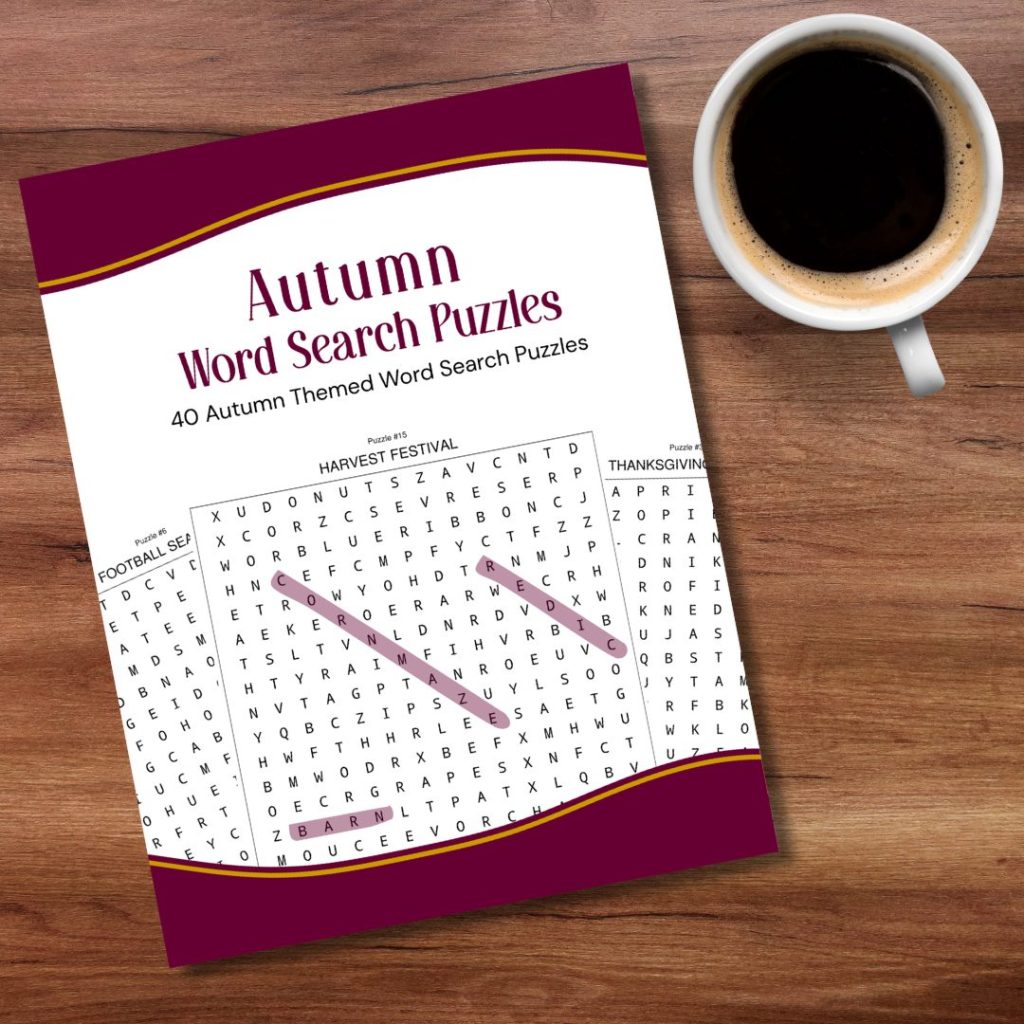 Fall into the comforting embrace of autumn with this delightful collection of 40 premium word search puzzles that captures all the coziness, color, and cherished traditions of the season!